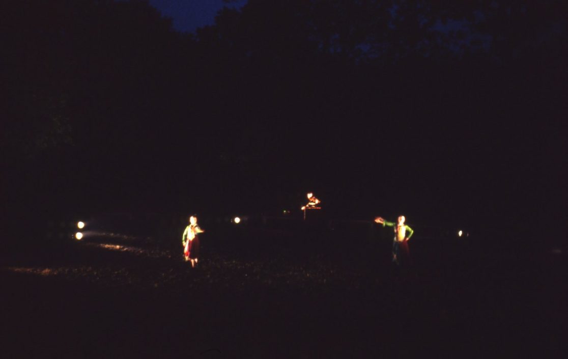 Hortus Imaginum was the first in a series of performances (1992-97) in which the audience walked trails and paths, thus engaged in relationship, active embodiment and spectatorship as they passed live performers, still images and sound sources. I referred to this body of work as landscape-based.
